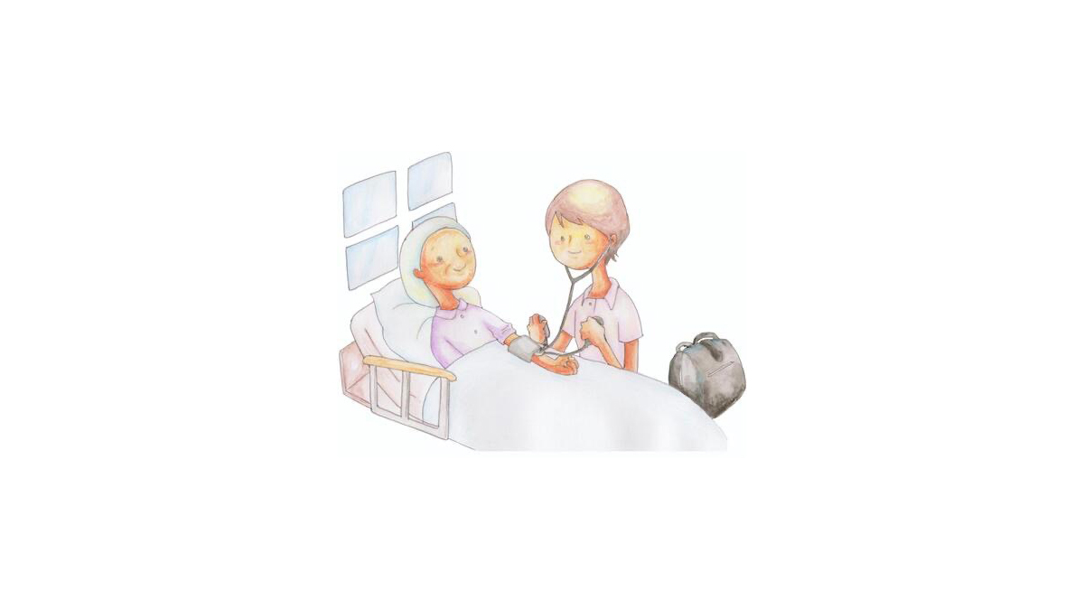 病気や障害の状態・血圧・体温・脈拍などのチェックをし、状態に応じた対応を行ないます